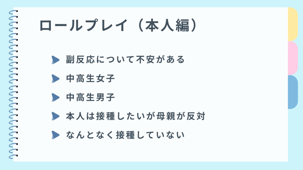 - 講義&ロールプレイ動画を視聴して、ポスターや配布資材などを準備